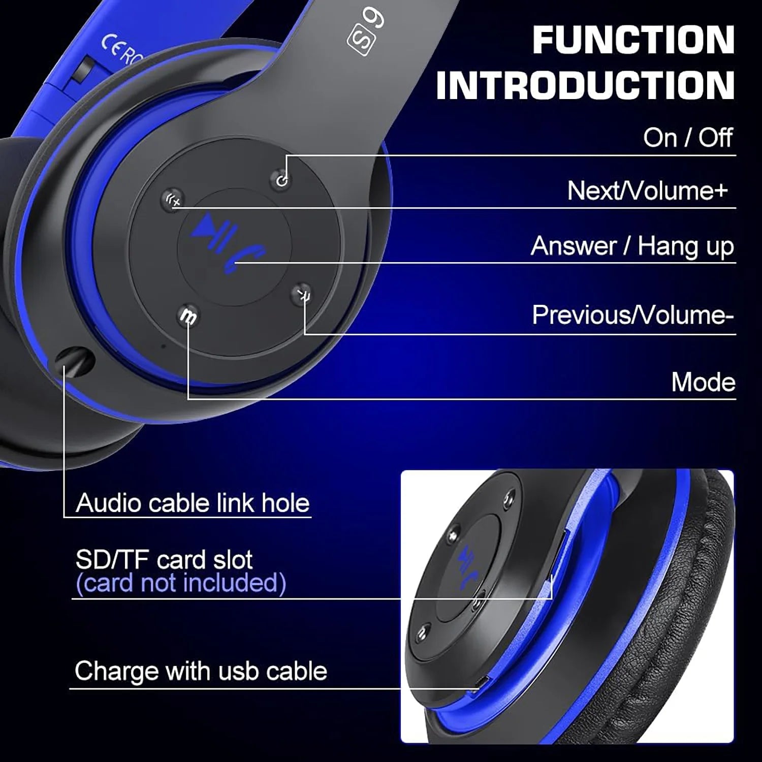 True Wireless Bluetooth Over-Ear Headphones, Black & Blue