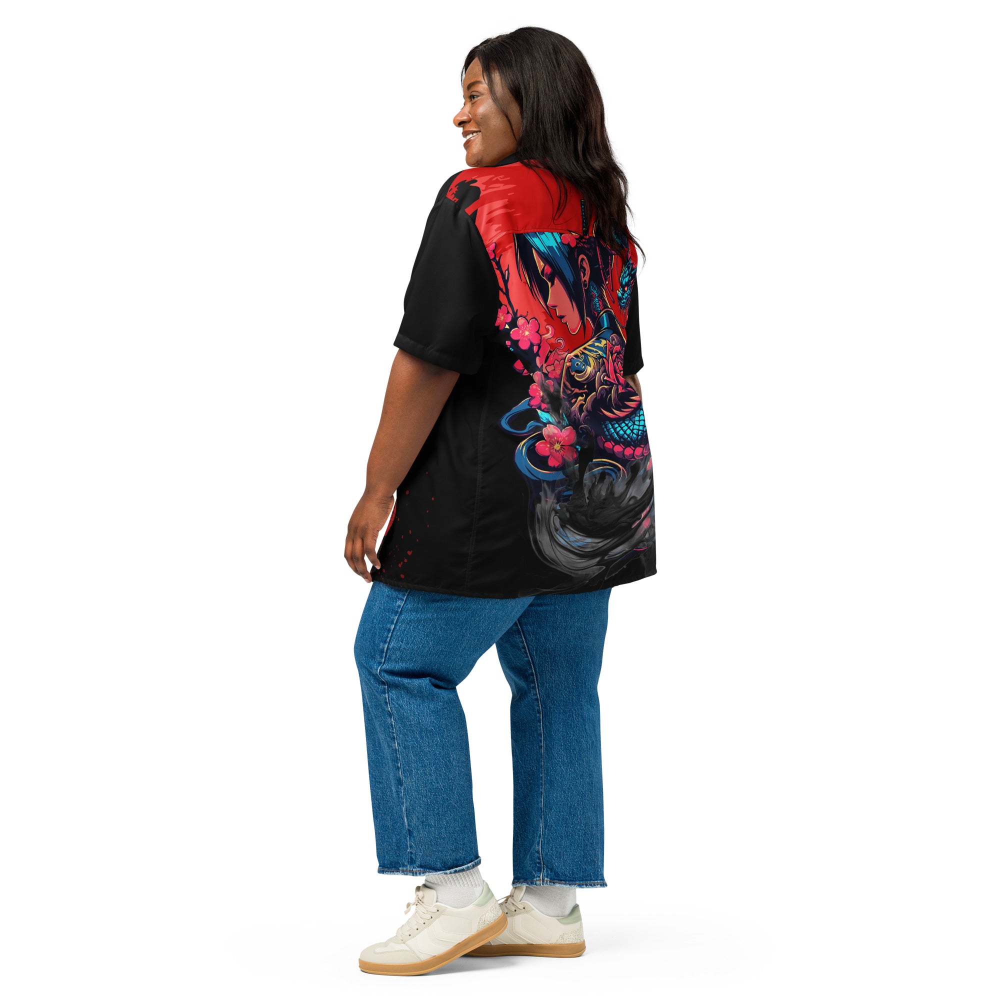 Velorrae’ Crimson Dragonflow Button-Up Shirt Step into bold artistry with this all-over print button-up. The back explodes with color and...